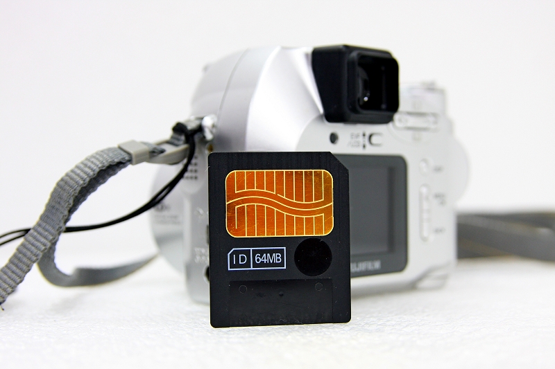 相機的儲存媒體為SM卡(SmartMedia),現在已經絕種,最大容量只有到128MB,沒有再更大的了,