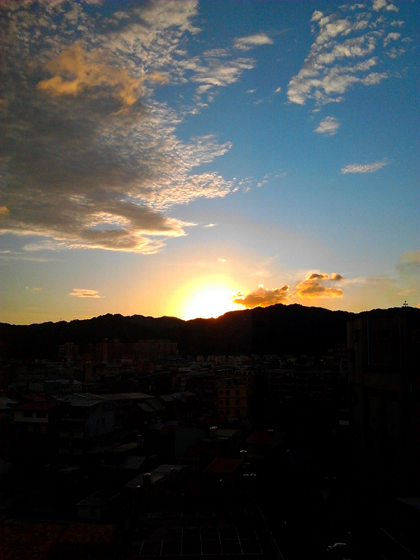 今天準備要下班時,看到滿漂亮的黃昏,太陽就快沒入山頭,馬上用手機拍了幾張,